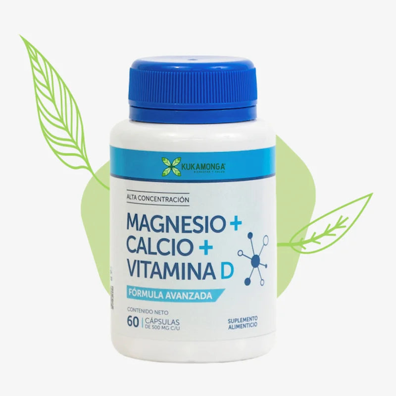 Presentación: Frasco con 60 Cápsulas Kukamonga \n \nIngredientes :Magnesio + Calcio + Vítamina D \n \nModo de empleo recomendado: Tomar 1 cápsula cada 24 horas. \n \nAdvertencias: Consulte a su médico previo a su uso en caso de embarazo, lactancia, tratamiento médico o alguna condición especial. Manténgase  fuera del alcance de los niños. \n \nEL CONSUMO DE ESTE PRODUCTO ES RESPONSABILIDAD DE QUIEN LO RECOMIENDA Y DE QUIEN LO USA \n \nESTE PRODUCTO NO ES UN MEDICAMENTO \n \nManténgase en un lugar fresco y seco.