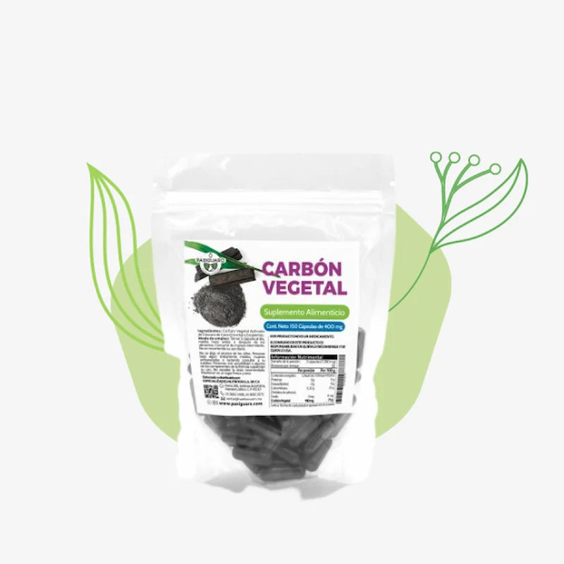 CARBÓN VEGETAL BOLSITA 150 cápsulas de 400 mg. Pasiguaro®